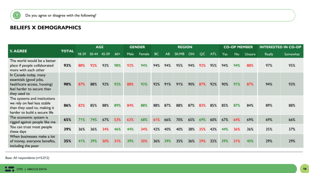 Taken together, the research points to something bigger: at a time when life feels harder to control, Canadians are gravitating toward institutions rooted in shared responsibility, community stability, and long‑term commitment. That’s exactly what co‑operatives are built to deliver.