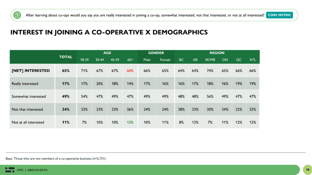 Taken together, roughly 70% of Canadians are already part of — or open to — the co‑operative model.