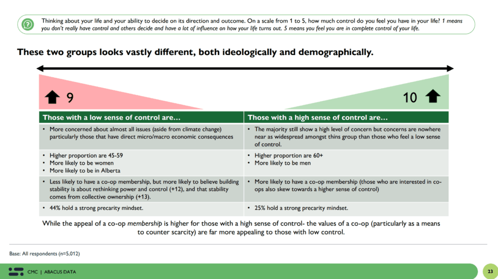 To better understand what Canadians are experiencing — and what they’re looking for next — Co‑operatives and Mutuals Canada (CMC) and CHF Canada partnered with Abacus Data on new national research. The study asked a simple but urgent question: